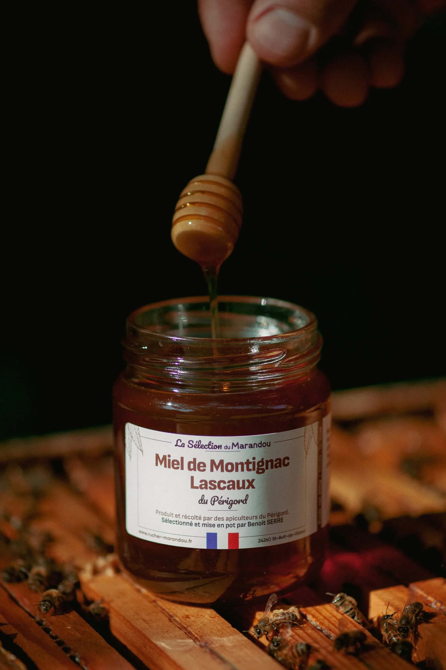 Ce miel de Montignac Lascaux est issu d’une sélection raffinée en plein cœur du Périgord Noir, là où forêts profondes, ruisseaux et clairières composent un paysage unique. Sa texture douce, onctueuse, révèle un parfum boisé, subtil et délicat, typique des fleurs et sous-bois de la vallée de la Vézère. Un miel idéal pour accompagner un fromage de caractère, parfumer une infusion, sucrer un yaourt ou savourer simplement à la cuillère.